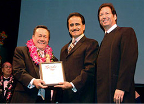 California State Senator Richard Alarcon honors Master Buck Sam Kong at the Martial Arts History Museum awards ceremony on October 14, 2006.